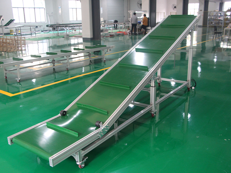 爬坡輸送機的輸送傾角大,最大可達90°,是大傾角輸送和垂直提升的理想設(shè)備。因此可以節(jié)約占地面積,節(jié)省設(shè)備投資和土建費用,取得良好的綜合經(jīng)濟效益。